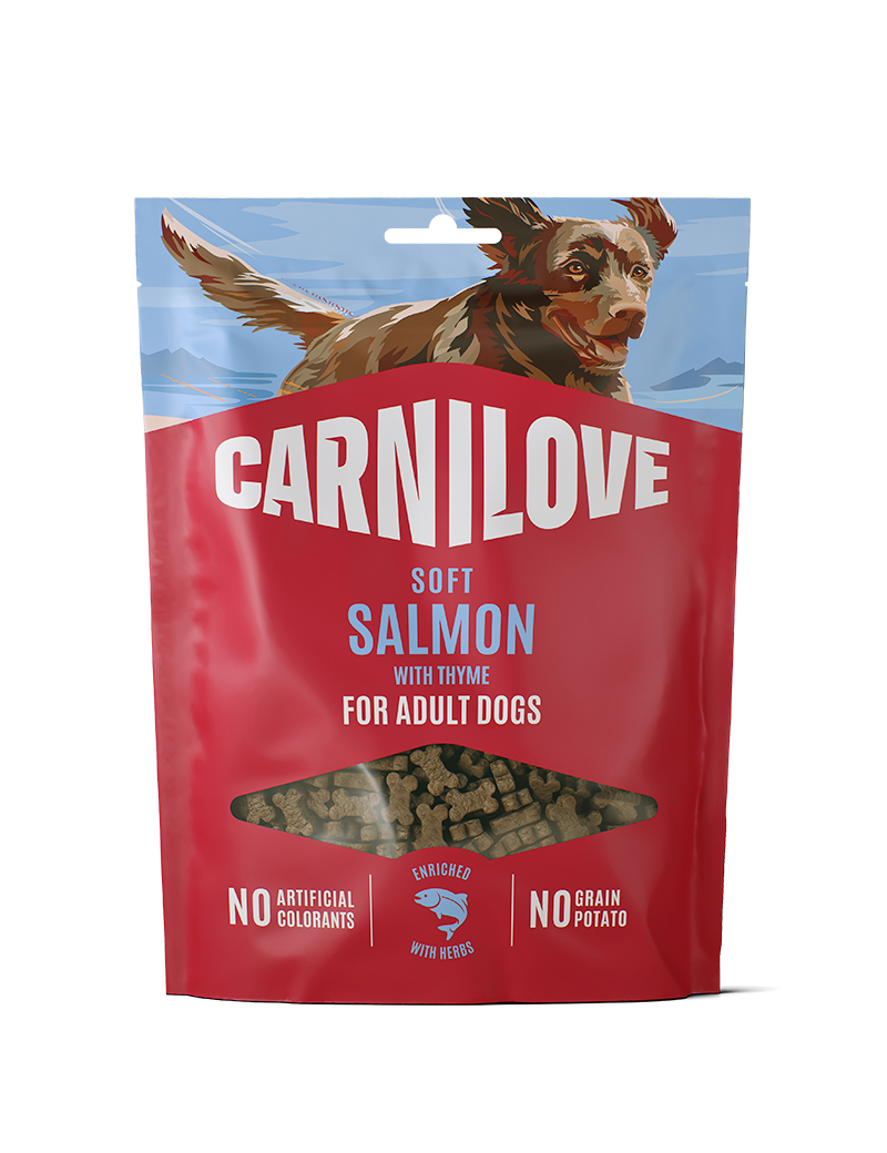 Ett utsökt mjukt hundgodis gjort på lax, med en len och pikant fisksmak. Timjan ger en varm örtton som fördjupar och förfinar smaken. Kompletteringsfoder.