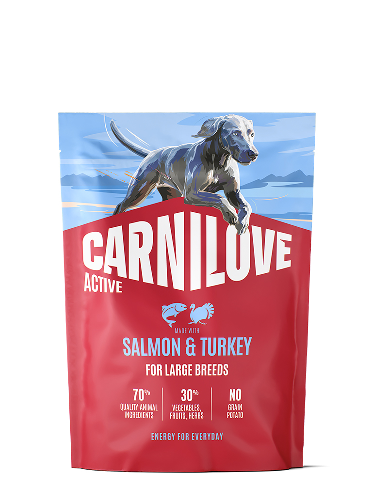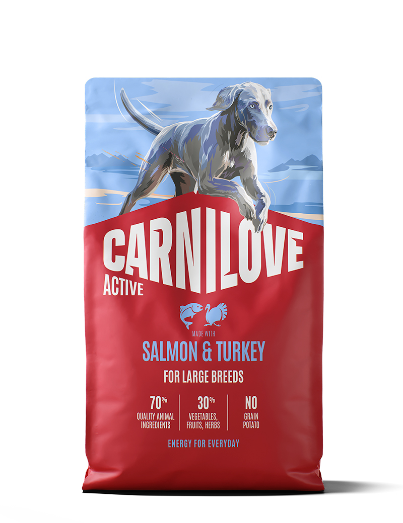 Färsk lax (26 %), kalkonprotein (24 %), gula ärtor, nötköttsfett (9 %), hydrolyserat kalkonprotein (7 %), torkad äppelmassa, ärtprotein, hydrolyserad lever (3 %), kikärtor, linfrö, pumpa, laxolja (1 %), morot, kaliumklorid, ärtmjöl, torkad havtornsbär (0,2 %), torkad ingefära (0,1 %), torkade blåbär (0,1 %), torkad rosmarin (0,1 %), torkade tranbär (0,1 %), torkad timjan (0,1 %), hydrolyserade skal från kräftdjur (glukosaminkälla, 0,022 %), cikoriarot (en källa till frukto-oligosackarider, 0,0163 %), broskextrakt (en källa för kondroitin, 0,014 %), bryggerijäst (en källa till mannan-oligosackarider, 0,013 %), yucca schidigera (0,0085 %).