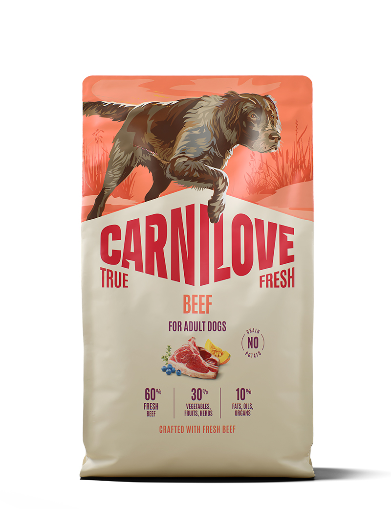 Rik på färskt nötkött – denna formula är anpassad för vuxna hundar och ger ett näringsrikt, smakfullt protein som motsvarar hundens naturliga behov.